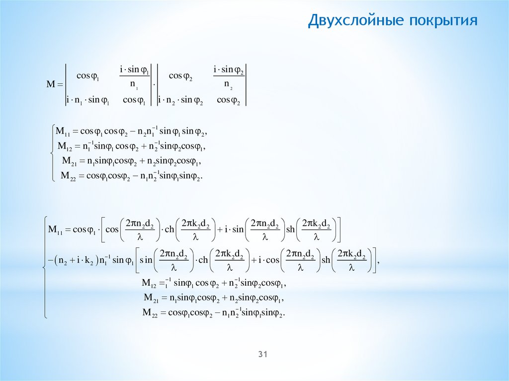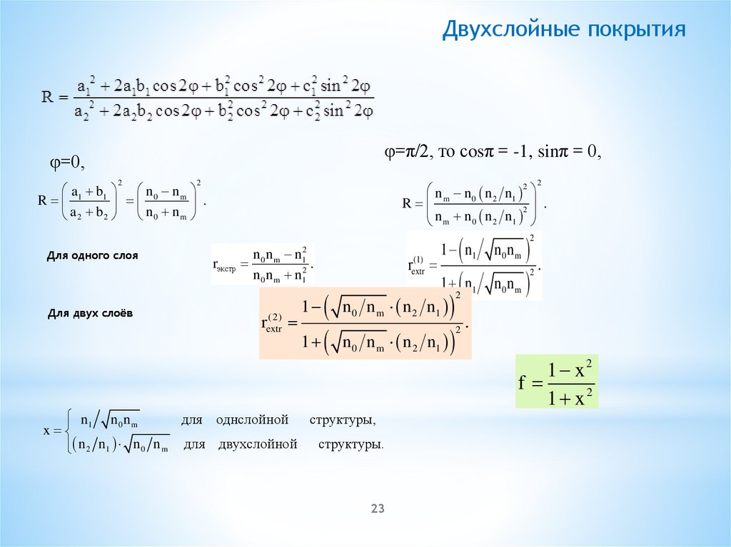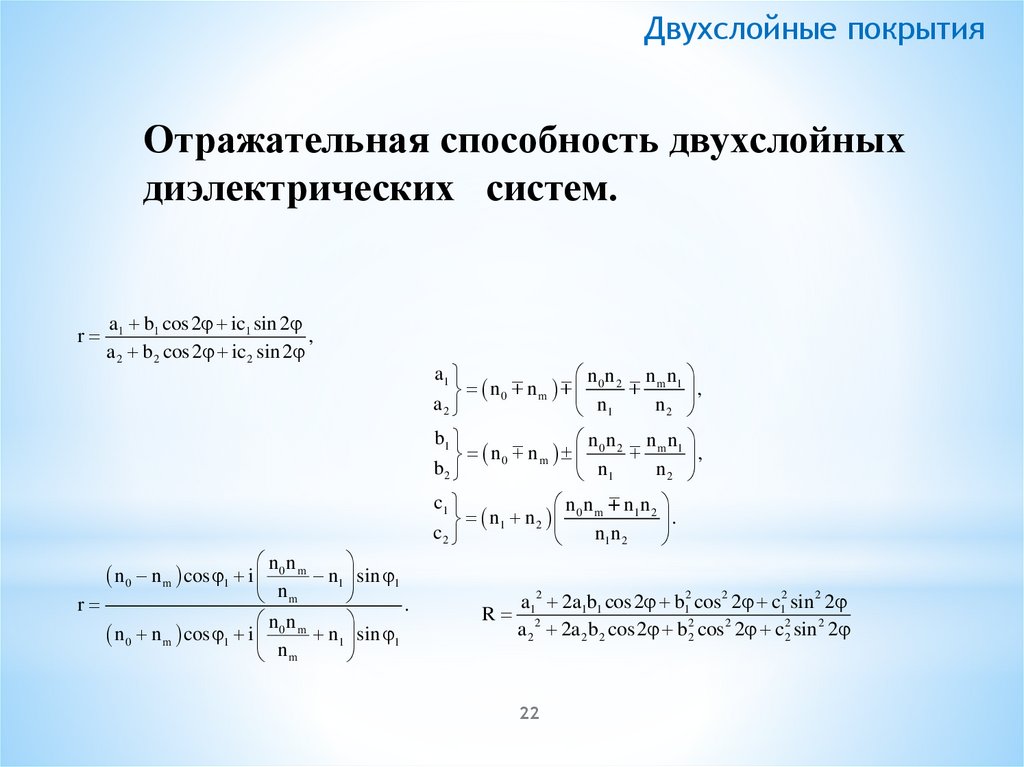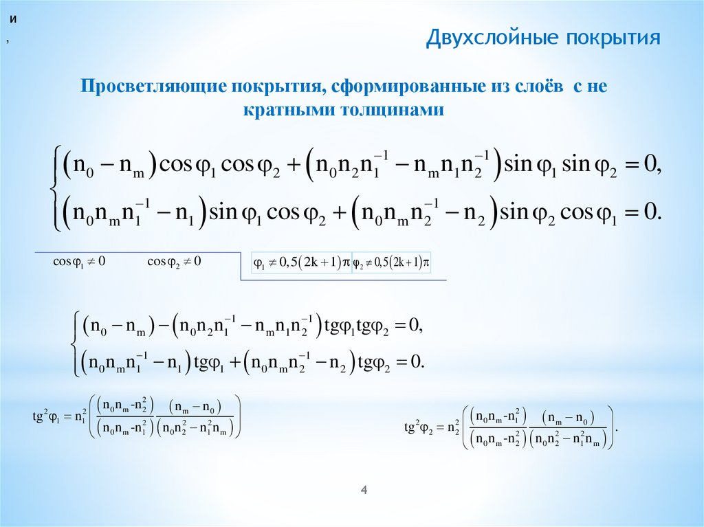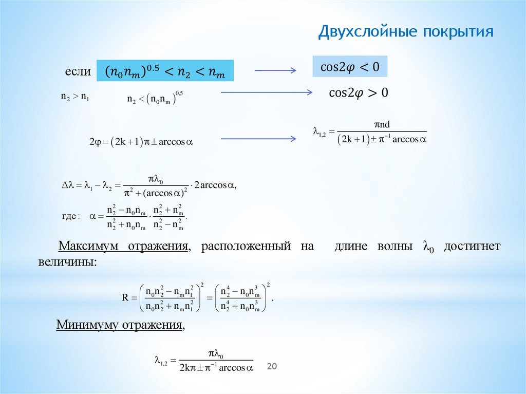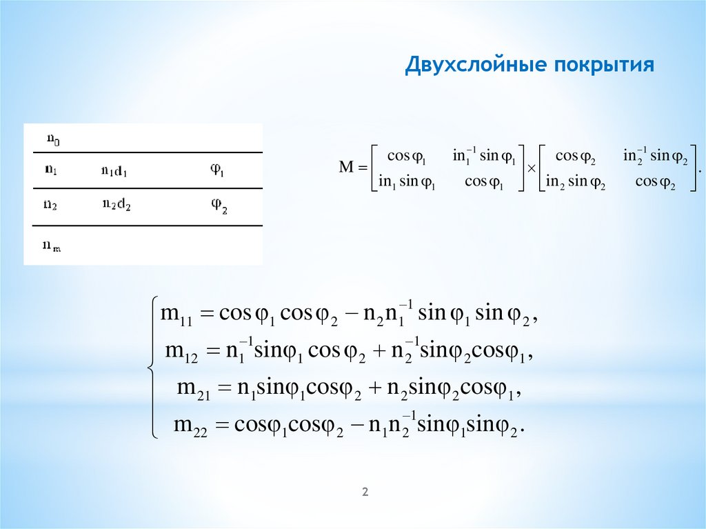 Двухслойные покрытияДвухслойные просветляющие покрытия, сформированные слоями с