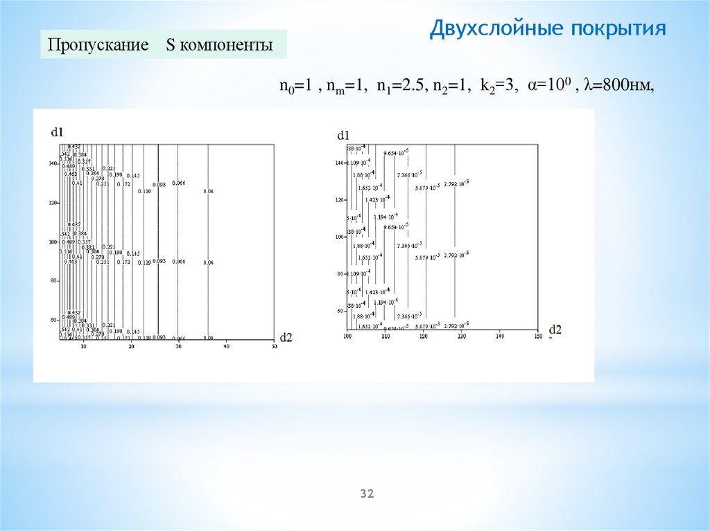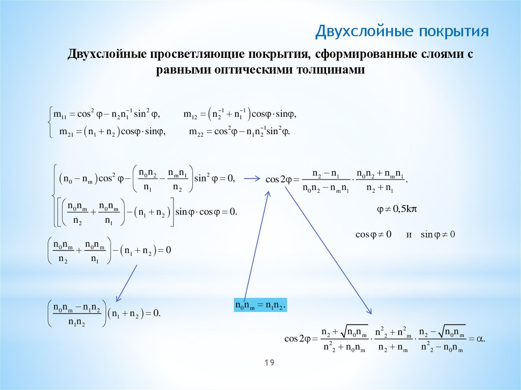 n1d1=0.302λ0 n2= 1,90, n2d2=0.132λ0 nm=1,51 от длины волны и угла падения