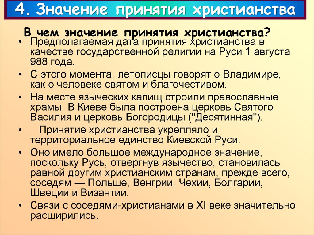 4. Значение принятия христианстваВ чем значение принятия христианства?