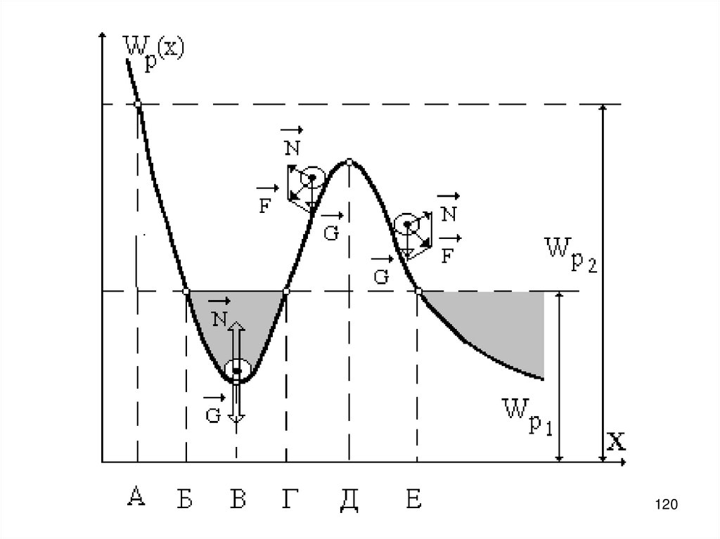 119. Движение частицы в потенциальном поле: если полная энергия частицы меньше значения потенциального барьера, то частица может