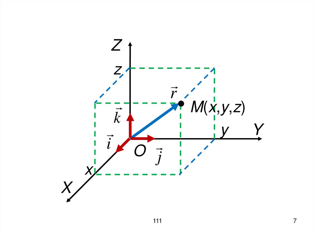 8. Здесь i, j, k, – единичные ортогональные вектора, направленные вдоль осей x, y, z, соответственно. Вектор r, также может быть
