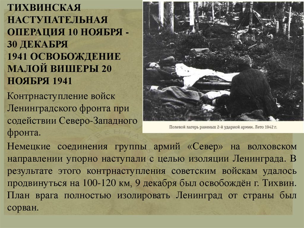продвинуться на 100-120 км, 9 декабря был освобождён г. Тихвин.