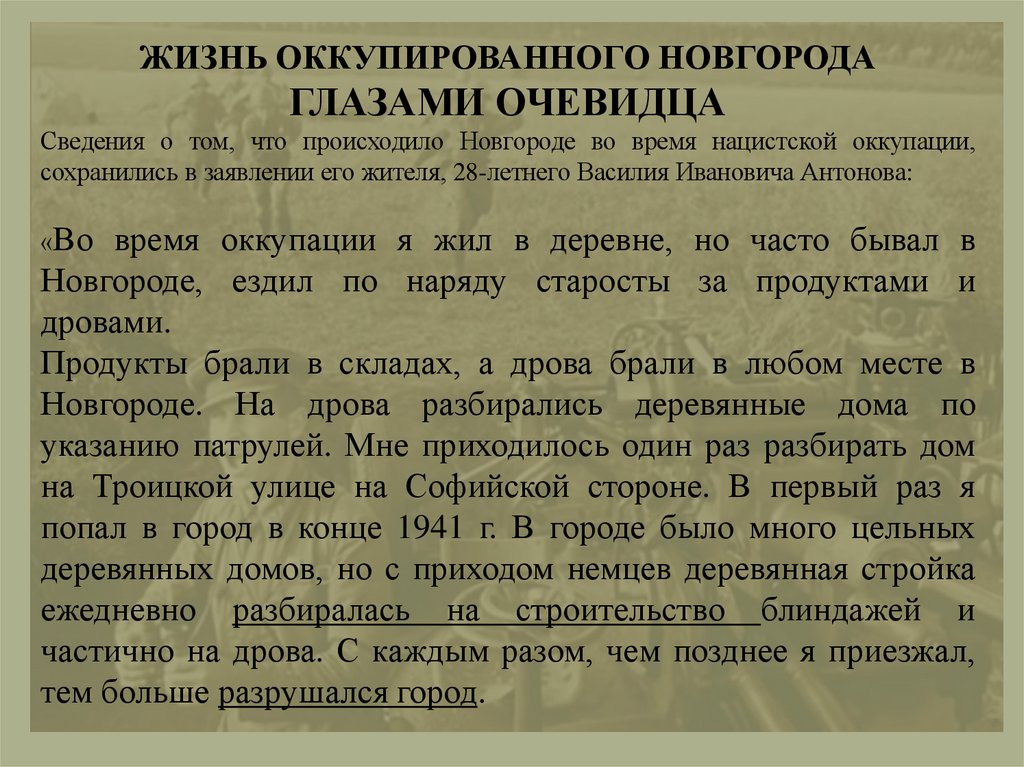 ЖИЗНЬ ОККУПИРОВАННОГО НОВГОРОДАГЛАЗАМИ ОЧЕВИДЦА