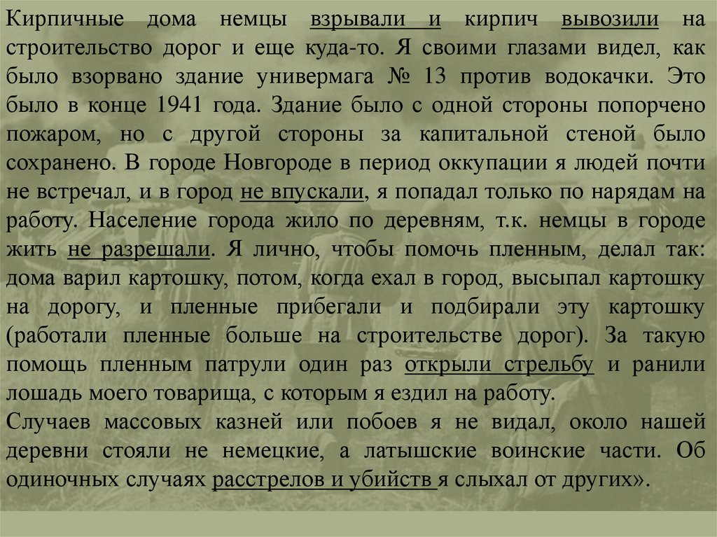 Сведения о том, что происходило Новгороде во время нацистской оккупации,