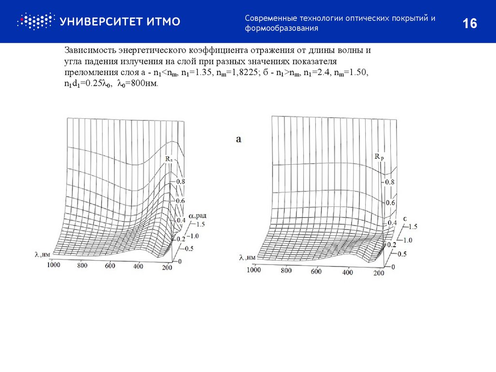 Зависимость энергетических коэффициентов отражения и пропускания от длины