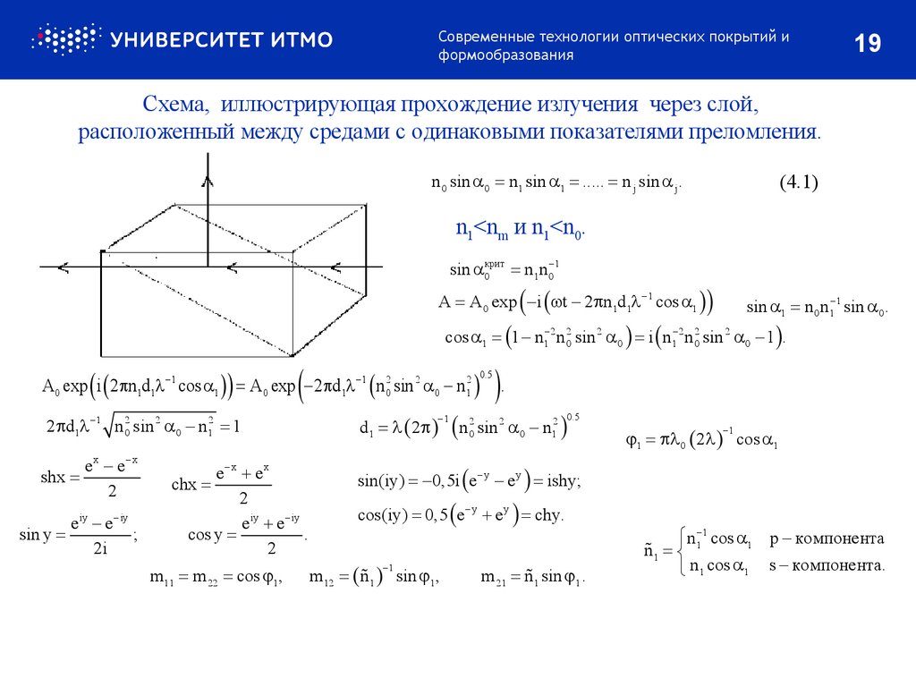 слоя, показатель преломления которого лежит в интервале n0<n1<nm (B>0) и n1>nm(B<0),