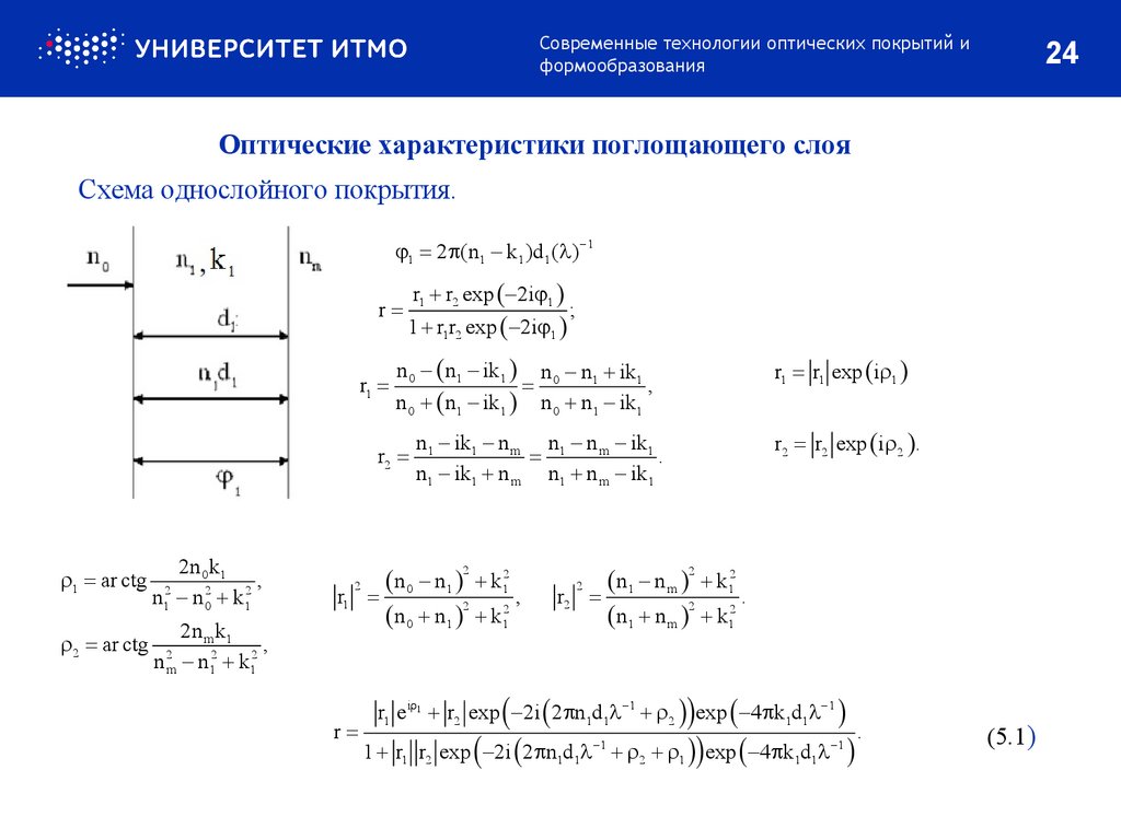 волны и коэффициентов поглощения слоя, оптическая толщина которого n1d1=0.25λ0, а λ0=690нм, n0=1,