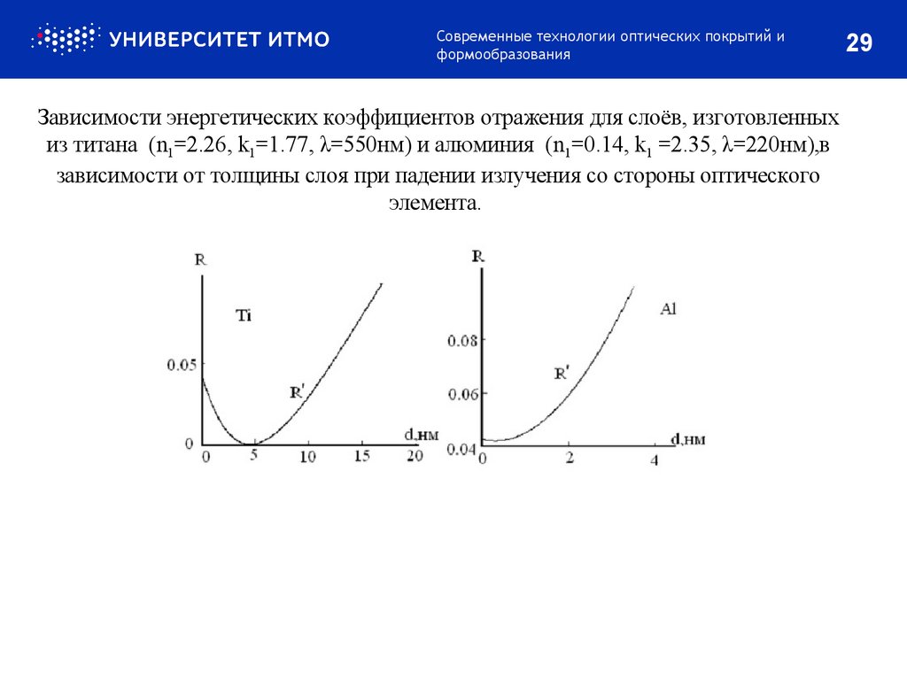изготовленных из титана (n1=2,26, k1 =1,77, λ=550нм) и алюминия (n1=0,14, k1 =2,35, λ=220нм) в
