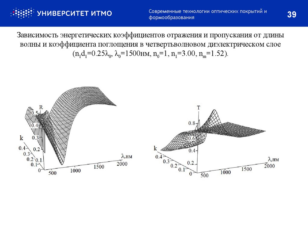 волны и коэффициента поглощения в четвертьволновом диэлектрическом слое