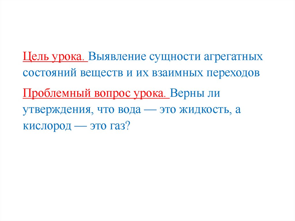 Цель урока. Выявление сущности агрегатныхсостояний веществ и их взаимных переходов