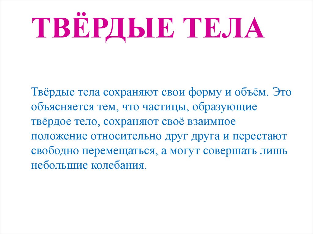 ТВЁРДЫЕ ТЕЛА1.ТВЁРДЫЕ ТЕЛА СОХРАНЯЮТ ФОРМУ, ОБЪЁМ
