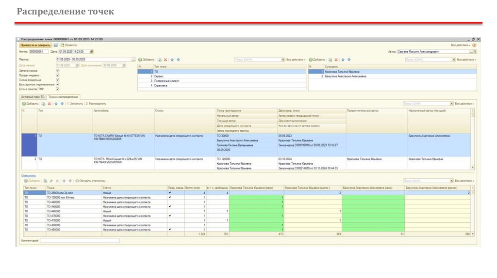 Распределение точек и активный парк