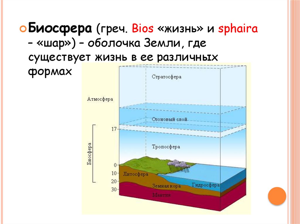 Биосфера (греч. Bios «жизнь» и sphaira– «шар») – оболочка Земли, где