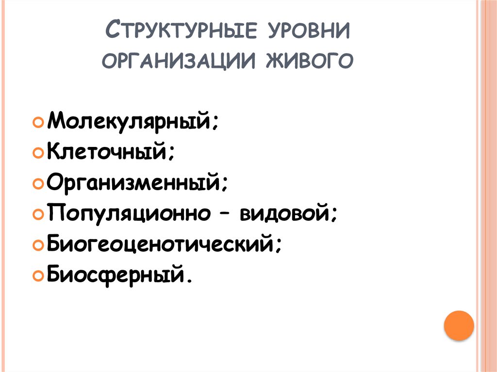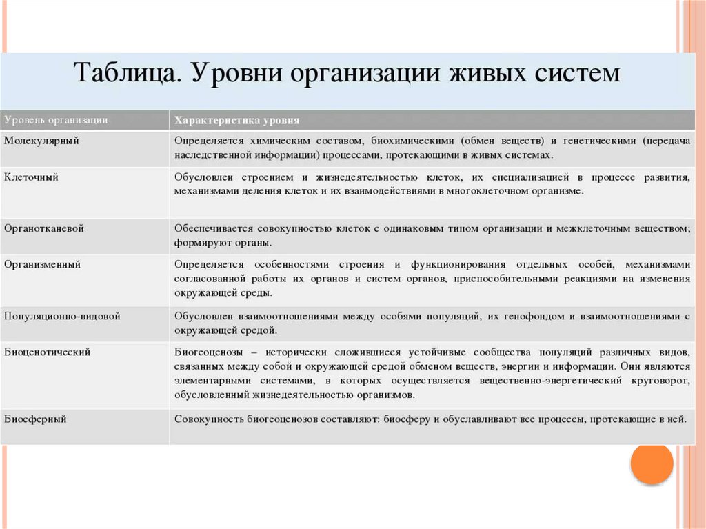 СТРУКТУРНЫЕ УРОВНИОРГАНИЗАЦИИ ЖИВОГО