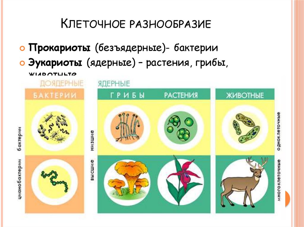 КЛЕТОЧНОЕ РАЗНООБРАЗИЕПрокариоты (безъядерные)- бактерии