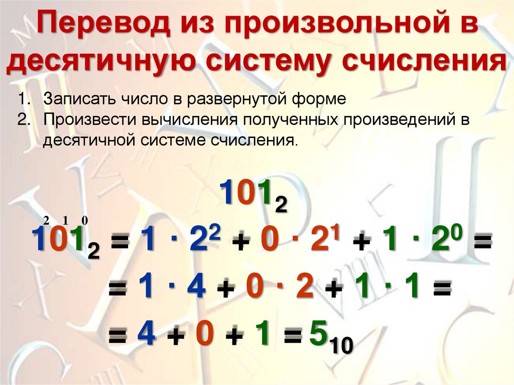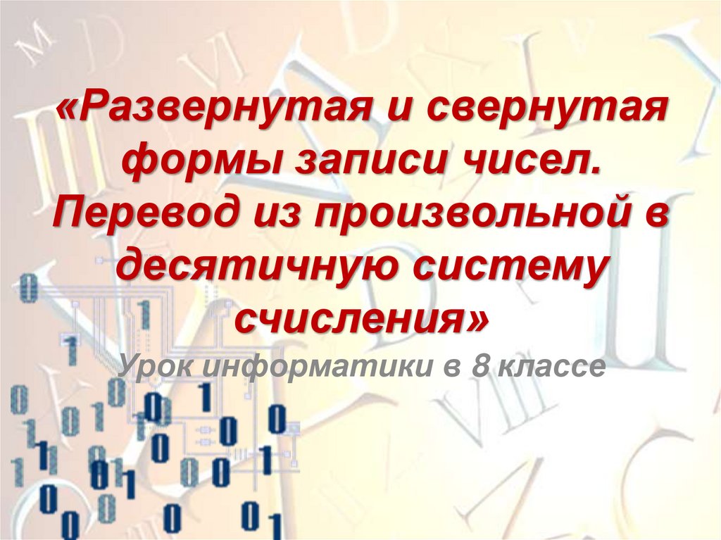 1. «Развернутая и свернутая формы записи чисел. Перевод из произвольной в десятичную систему счисления»