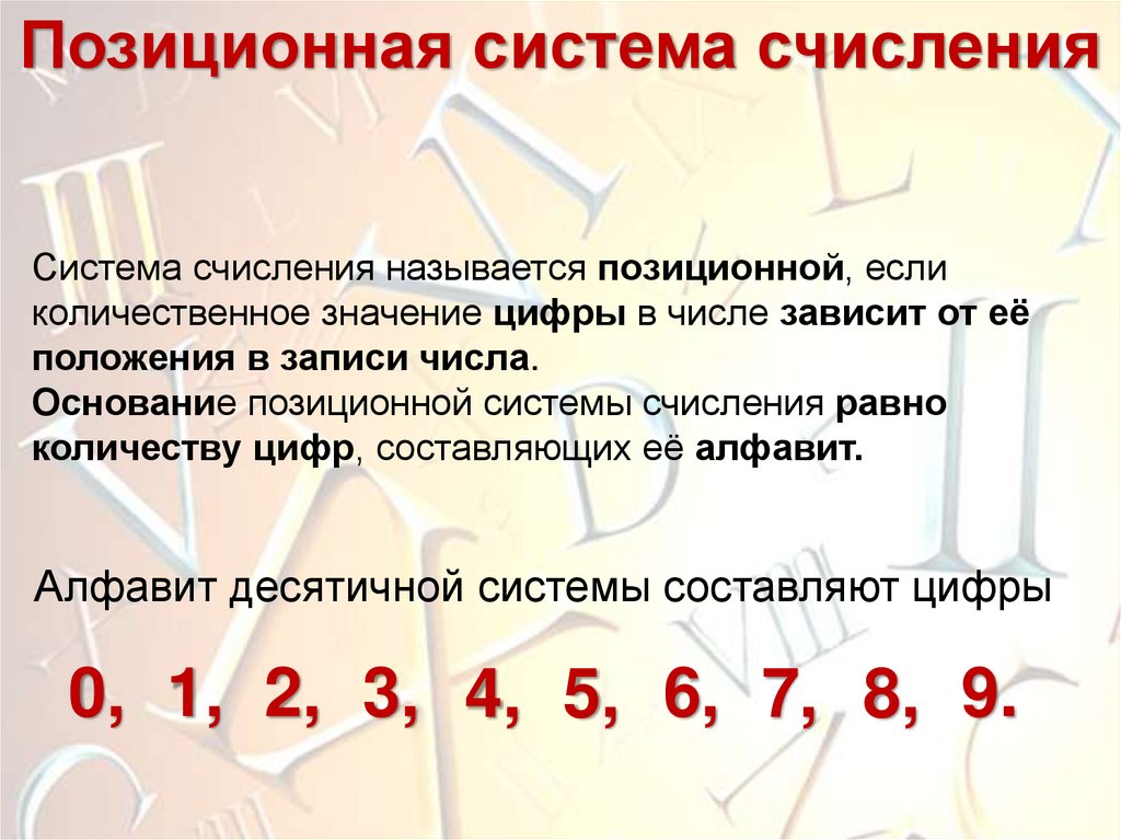 (цифры) в записи числа зависит от его позиции (разряда) .