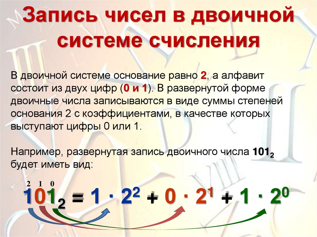 1012 = 1 · 2 + 0 · 2 + 1 · 2 =