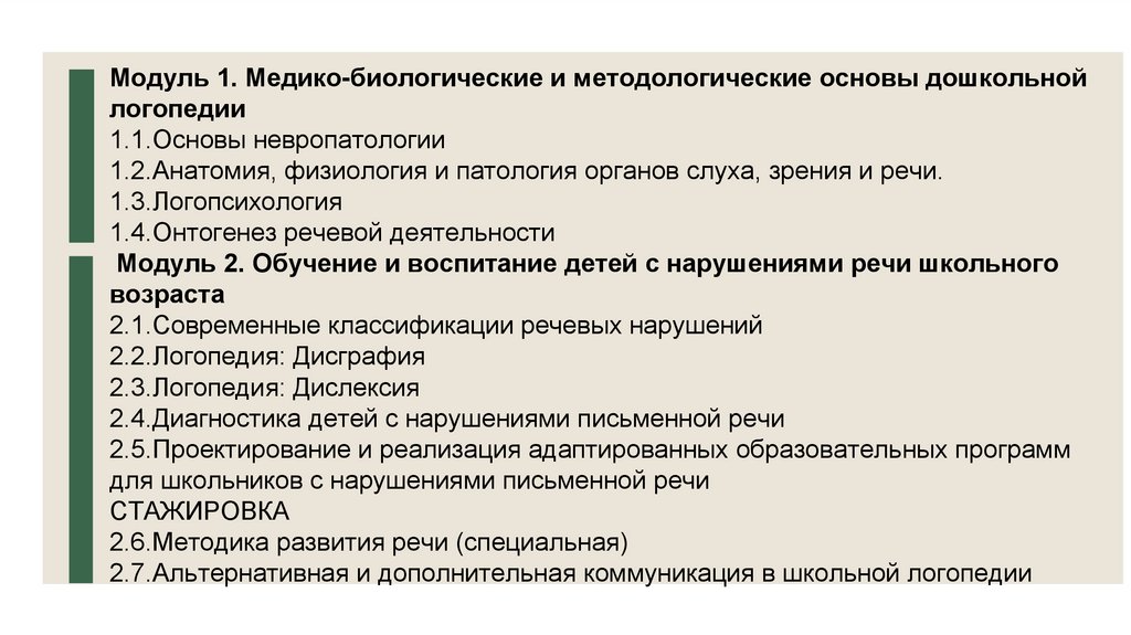 Модуль 1. Медико-биологические и методологические основы дошкольнойлогопедии
