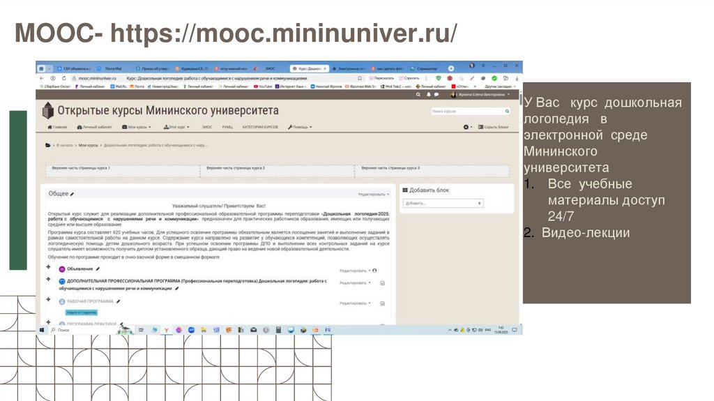 MOOC- https://mooc.mininuniver.ru/У Вас курс дошкольная