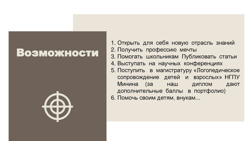 Возможности1. Открыть для себя новую отрасль знаний