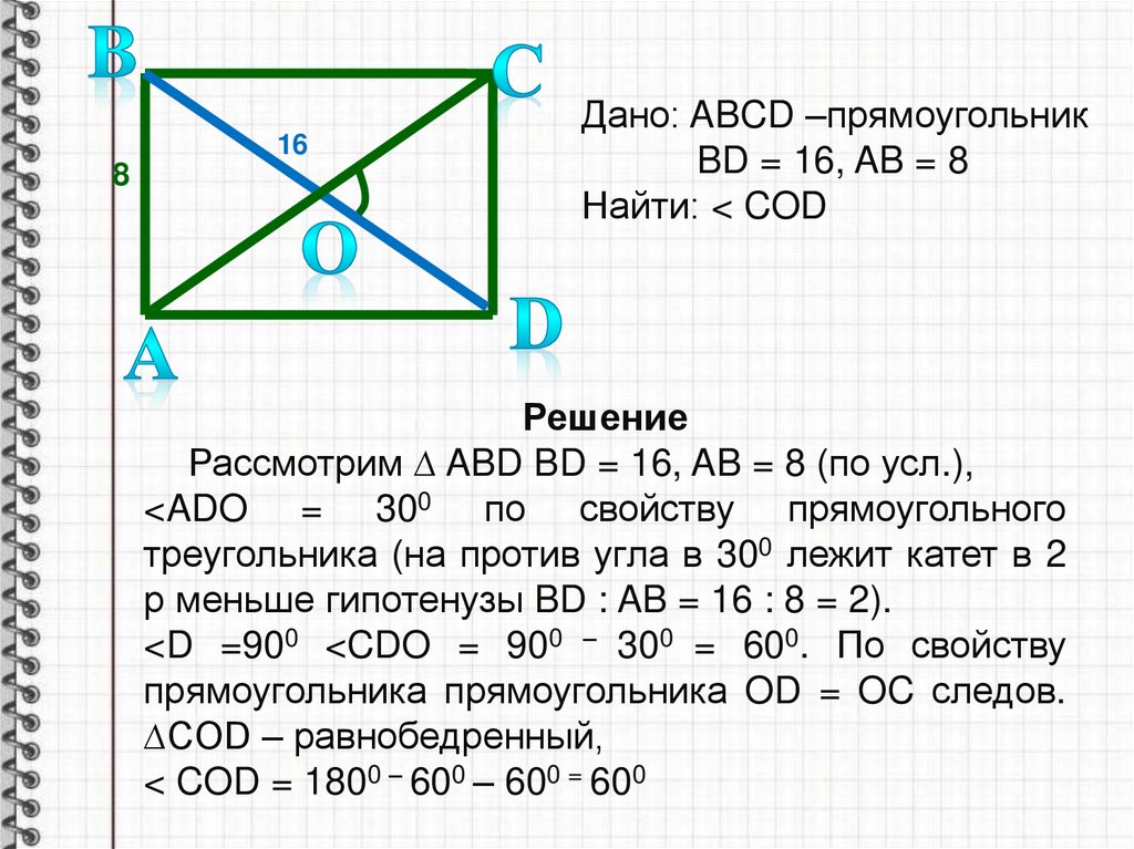 Рассмотрим ∆ ABD BD = 16, AB = 8 (по усл.),