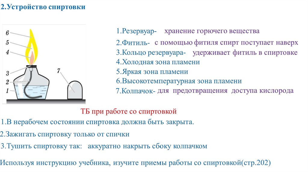 направлен в сторону и от себя, и от соседей. Производите опыты только над столом.