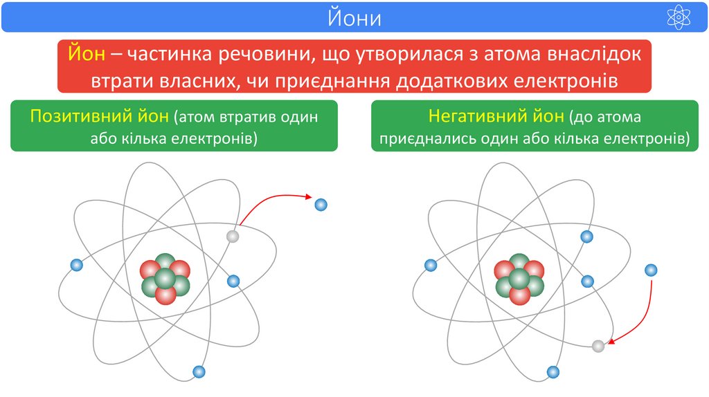 ЙониЙон – частинка речовини, що утворилася з атома внаслідок