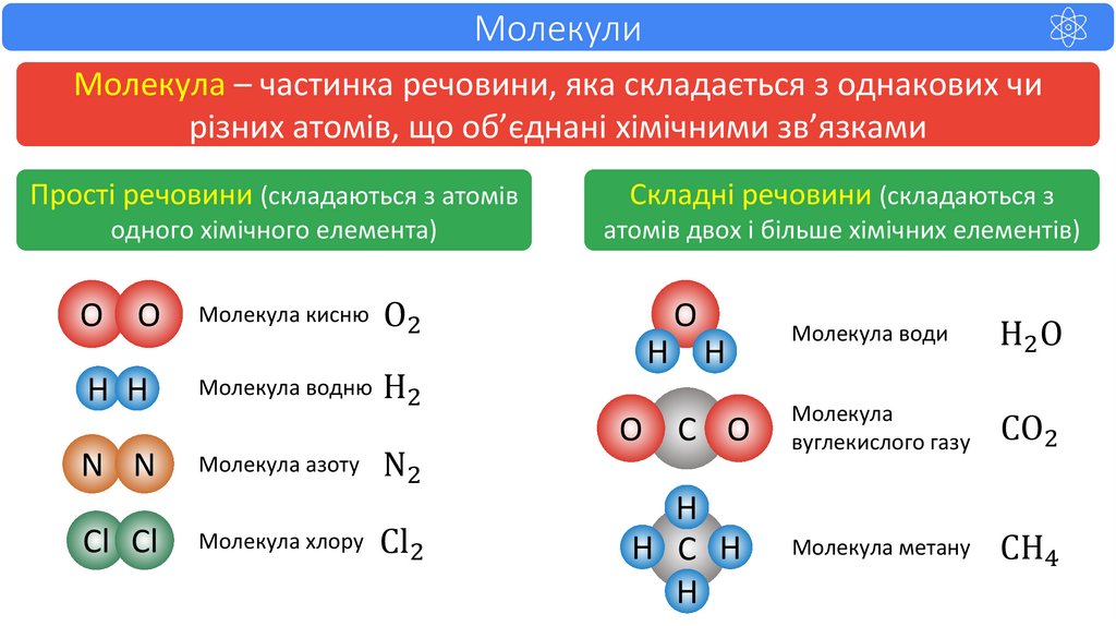 МолекулиМолекула – частинка речовини, яка складається з однакових чи