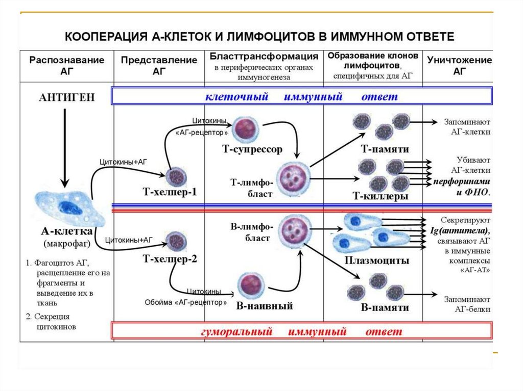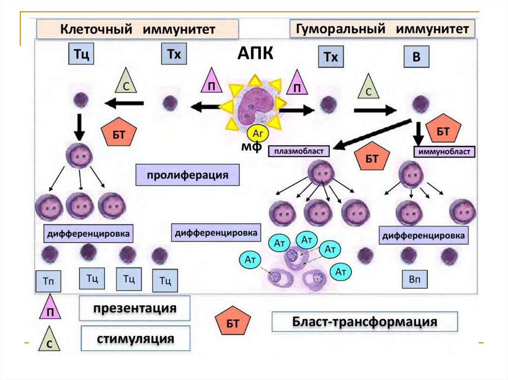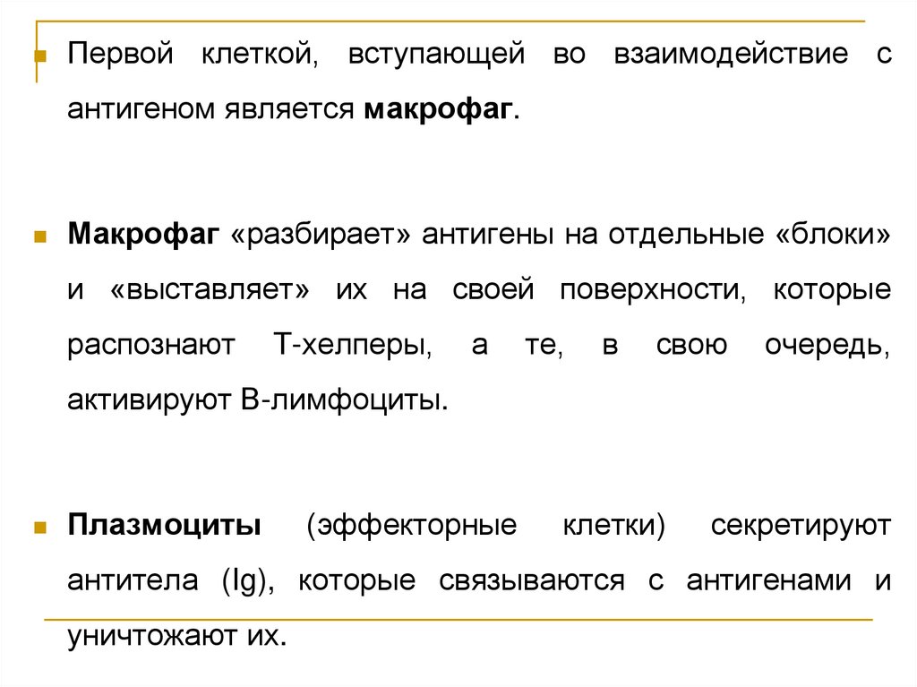 клеток, В-клеток и презентует чужеродные пептиды для Тхелперов, инициируя приобретенный иммунитет.