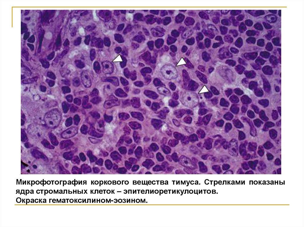ретикулоэпителиальную основу и лимфоциты (35% от всех лимфоцитов тимуса).