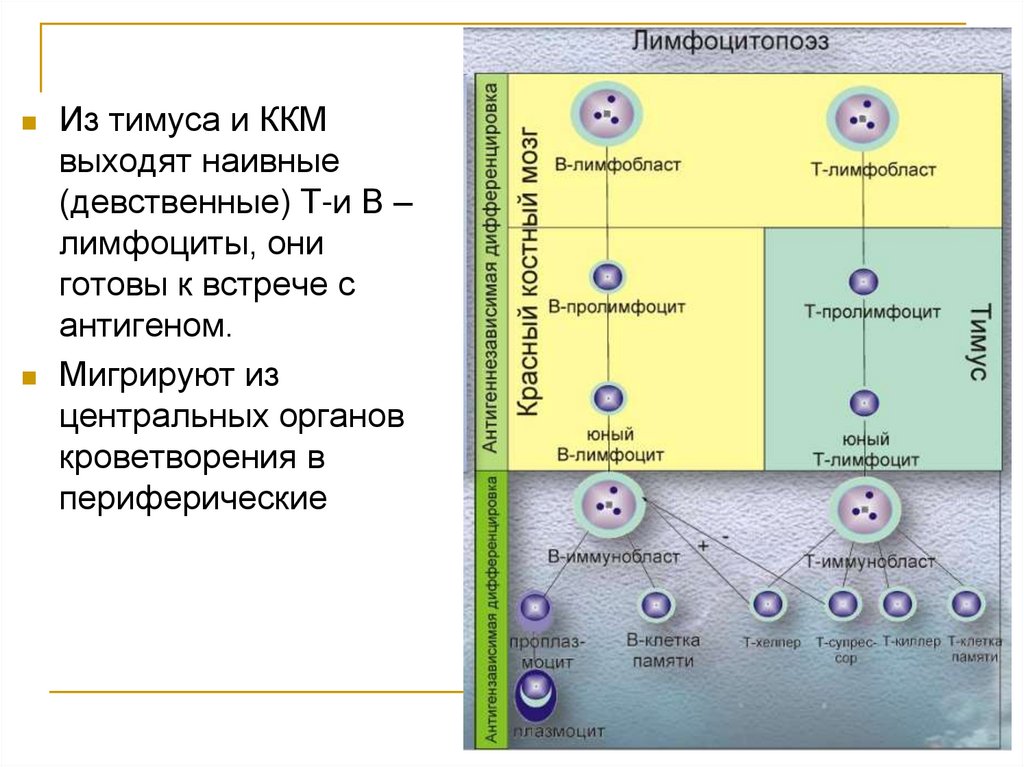 1 — рециркулирующие Тлимфоциты (попадают в тимус