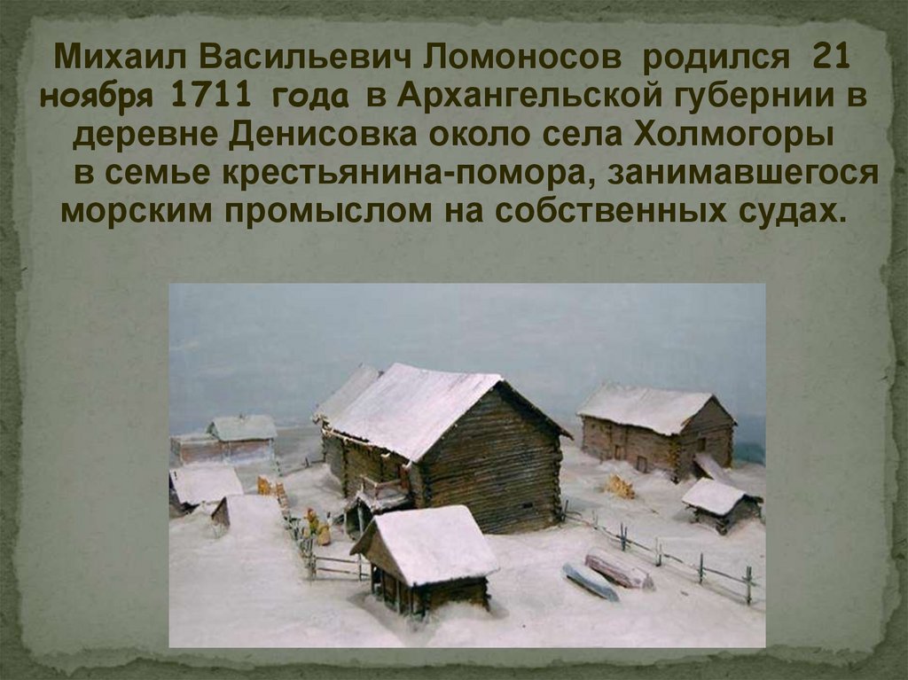 Михаил Васильевич Ломоносов родился 21ноября 1711 года в Архангельской губернии в