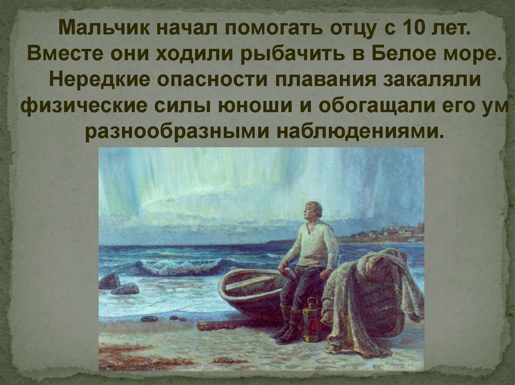 Мальчик начал помогать отцу с 10 лет.Вместе они ходили рыбачить в Белое море.