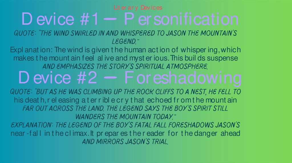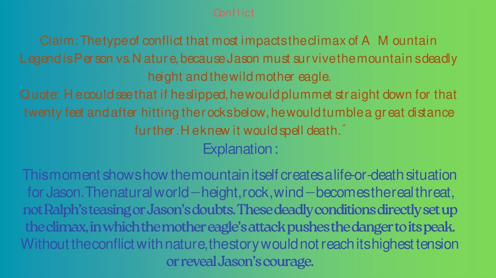Legend is Person vs. Nature, because Jason must survive the mountain s deadly