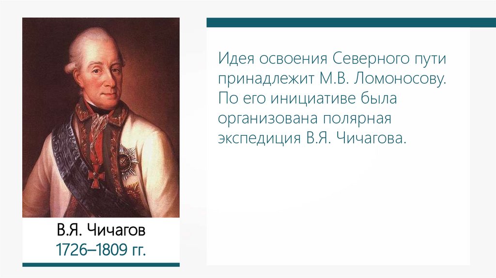Идея освоения Северного путипринадлежит М.В. Ломоносову.