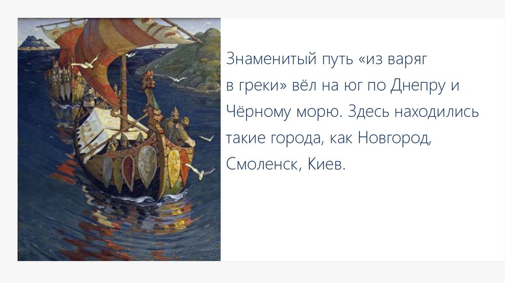 Знаменитый путь «из варягв греки» вёл на юг по Днепру и
