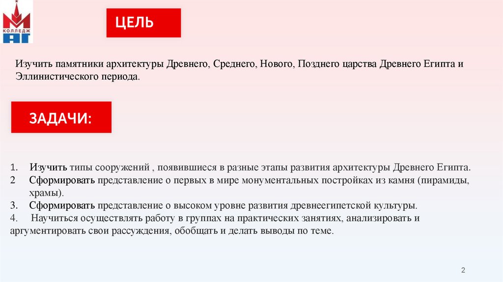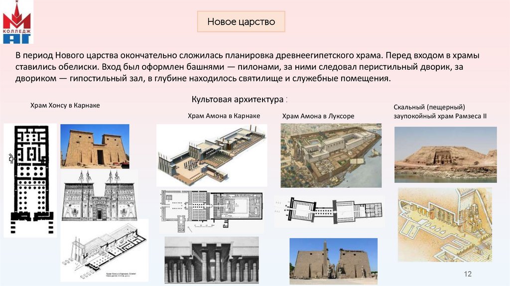 ЦЕЛЬИзучить памятники архитектуры Древнего, Среднего, Нового, Позднего царства Древнего Египта и