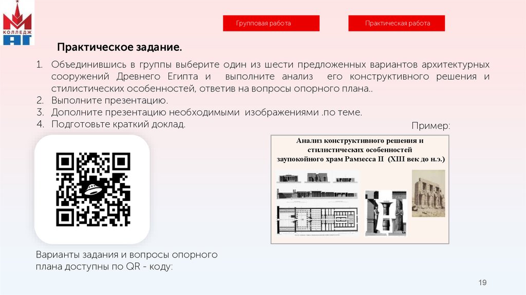 1. Объединившись в группы выберите один из шести предложенных вариантов архитектурных