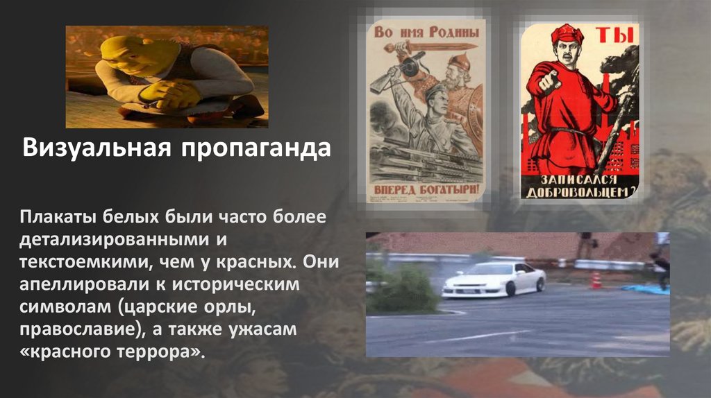 Визуальная пропагандаПлакаты белых были часто более