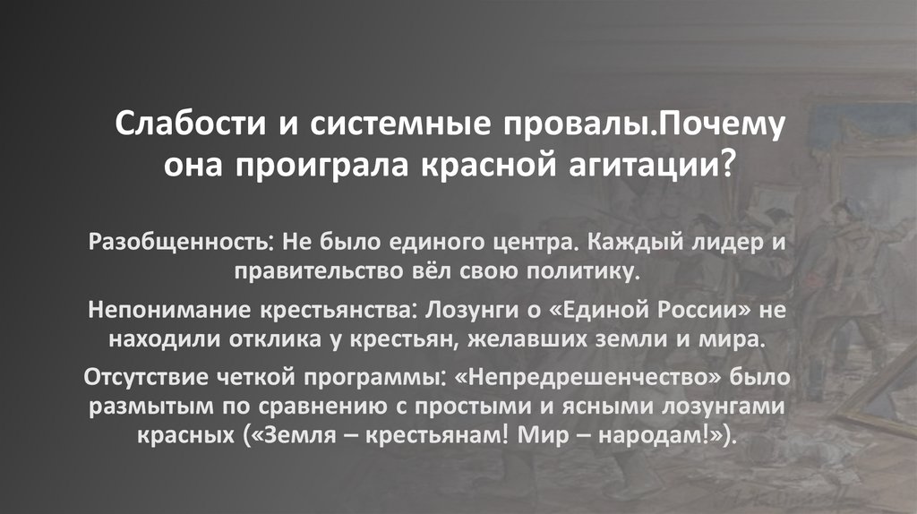 Слабости и системные провалы.Почемуона проиграла красной агитации?