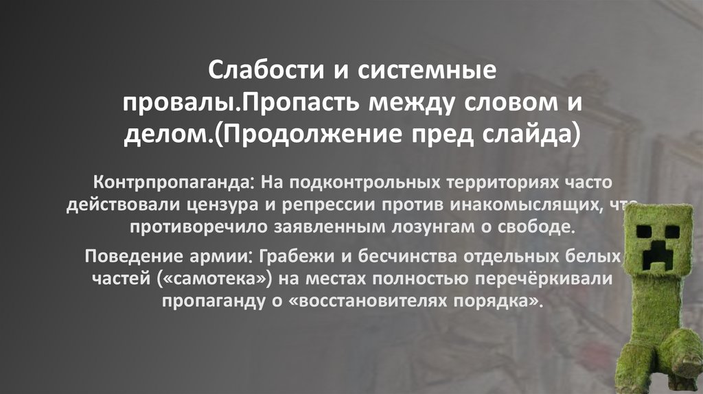 Слабости и системныепровалы.Пропасть между словом и