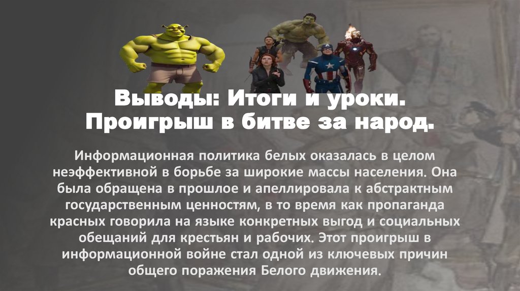 Выводы: Итоги и уроки.Проигрыш в битве за народ.