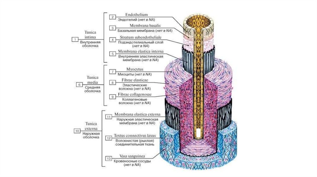 • Наружная оболочка -адвентиция состоит из РВНСТ, содержит пучки коллагеновых и