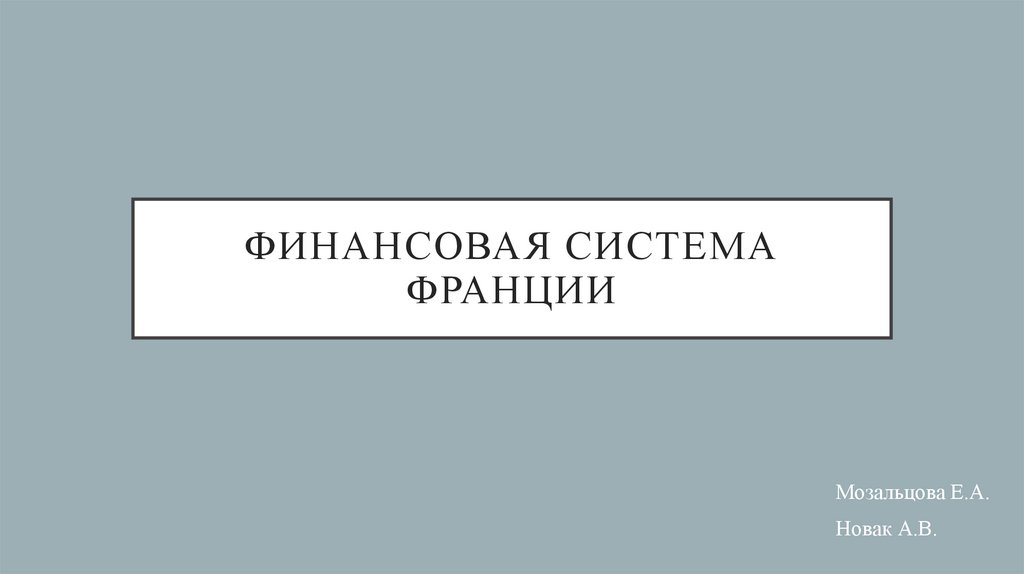 ФИНАНСОВАЯ СИСТЕМАФРАНЦИИ