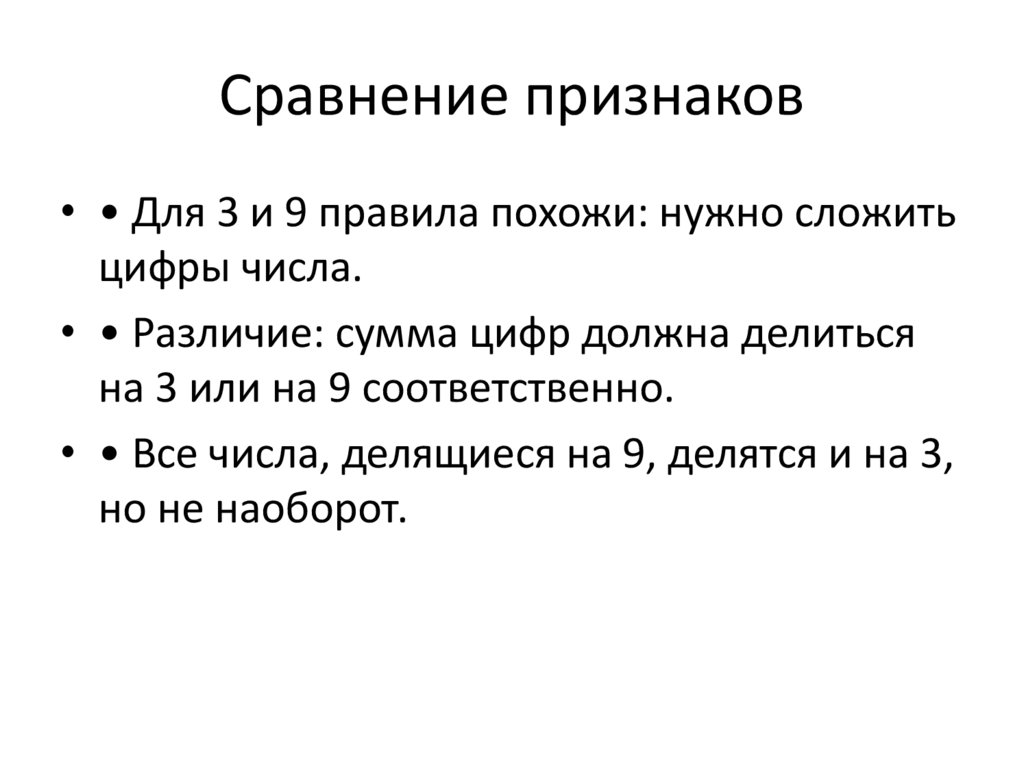 Сравнение признаков• • Для 3 и 9 правила похожи: нужно сложить