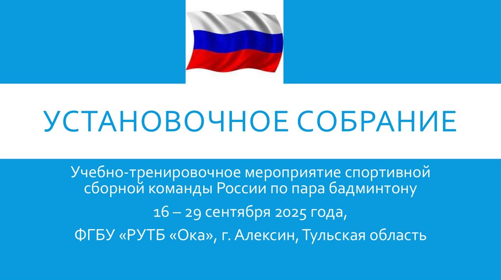 УСТАНОВОЧНОЕ СОБРАНИЕУчебно-тренировочное мероприятие спортивной