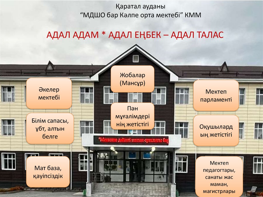 1. Қаратал ауданы “МДШО бар Кәлпе орта мектебі” КММ