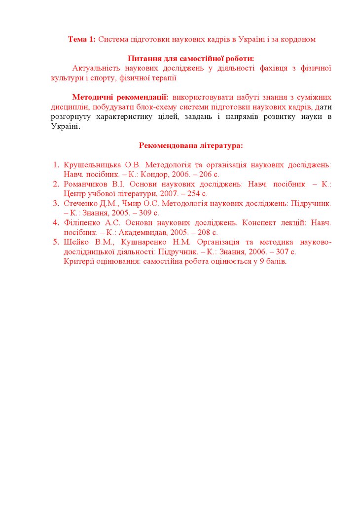 Тема 1: Система підготовки наукових кадрів в Україні і за кордономПитання для самостійної роботи:
