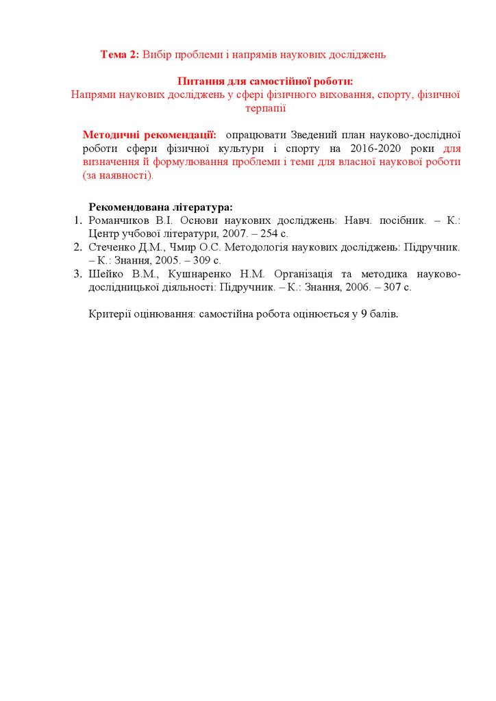 Тема 2: Вибір проблеми і напрямів наукових дослідженьПитання для самостійної роботи: